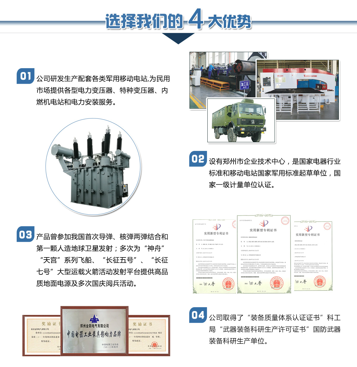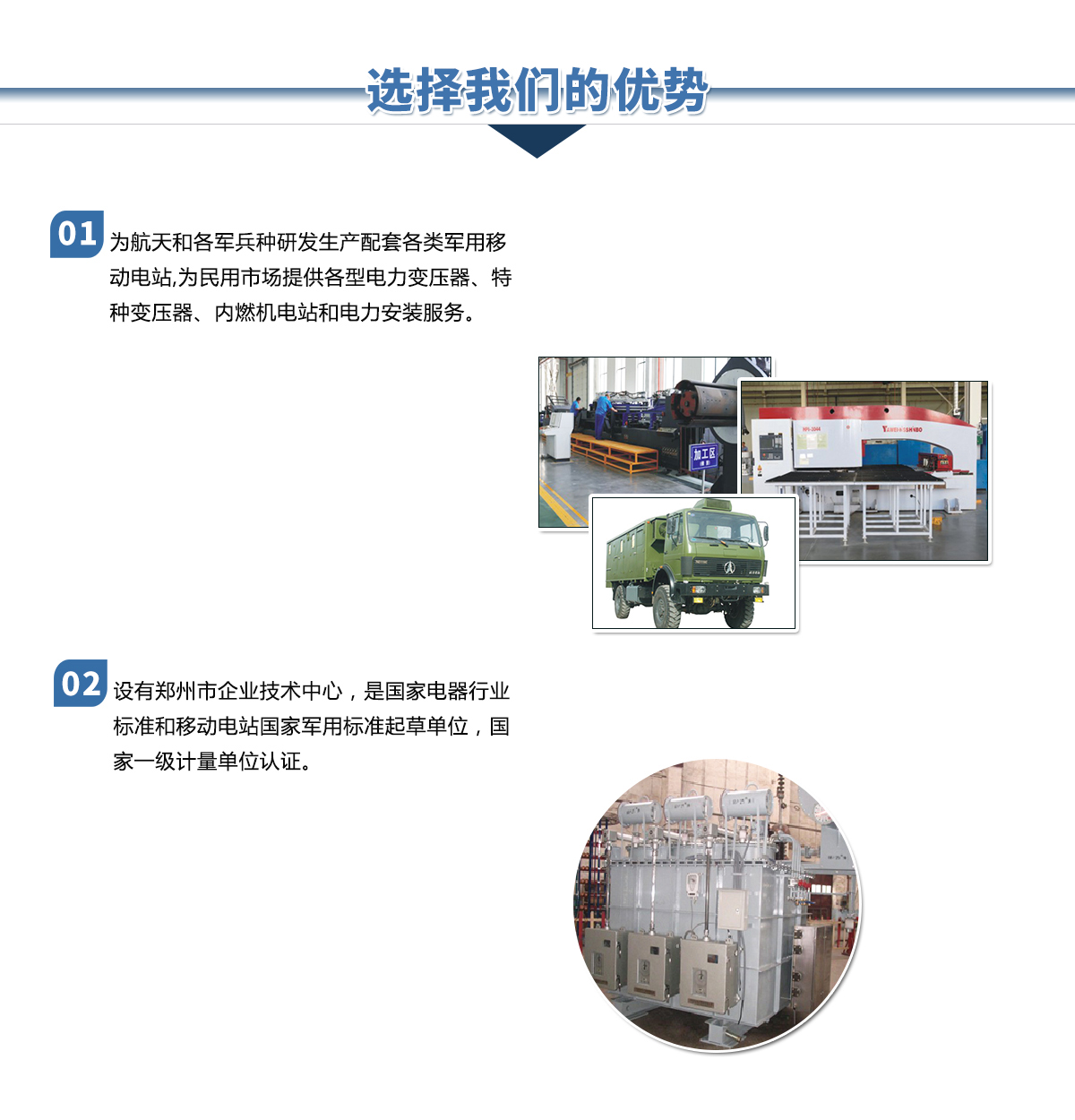 鄭州金陽電氣有限公司是由鄭州市國資委控股的國有獨資企業,是原機械工業部在上世紀五十年代投資建立的移動電站和電力變壓器生產企業。公司下設電站公司和變壓器公司及其它配套公司,長期以來在國內移動電站和電力變壓器行業占有重要位置。是河南省具備設計生產110kV電壓等級以上電力變壓器資質的企業,是國家經貿委首批推薦城鄉電網建設與改造所需變壓器的生產企業。河南省變壓器檢測中心設在我公司。